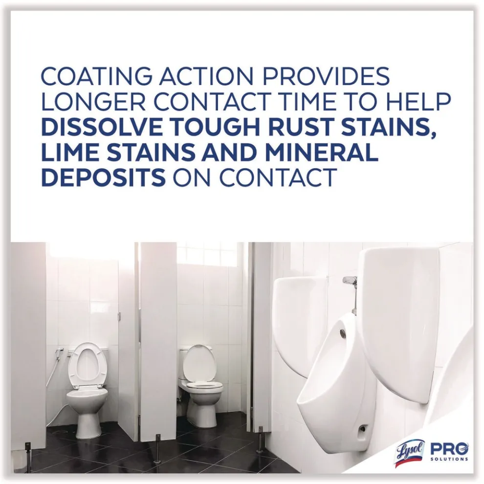 Clean, disinfect, and deodorize urinals and toilet bowls to give guests a clean bathroom experience. Meet staff and customer expectations around cleanliness. Optimize restroom cleaning time with a powerful formula that works on the toughest toilet stains in seconds. Remove hard water deposits with the thick 9.5% hydrochloric acid formula that adheres to stains for better cleaning and coats the bowl above and below the waterline. Kills 99.9% of viruses and bacteria when used as directed. Elevate restroom experiences throughout facilities for customers and staff with a powerful cleaning formula that helps leave surfaces shiny. Will not harm plumbing or septic systems.