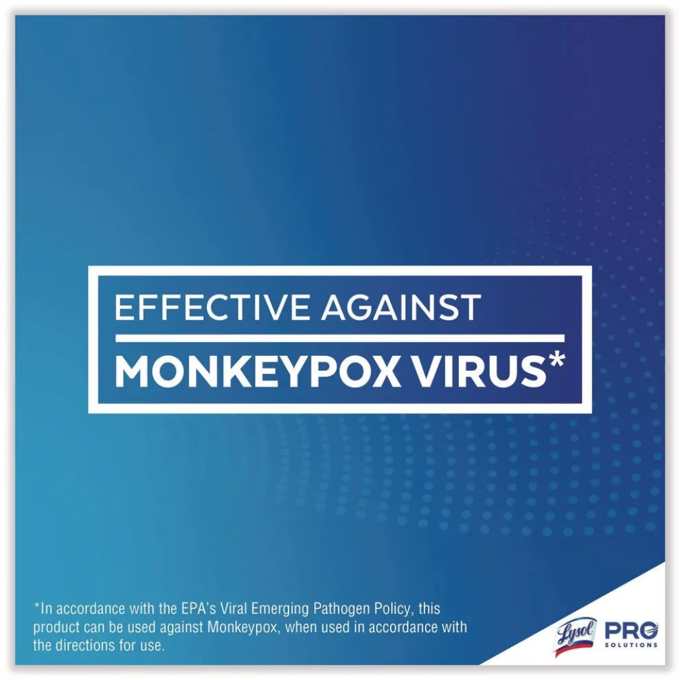 This product has demonstrated effectiveness against viruses similar to Monkeypox on hard, non-porous surfaces and in accordance with the EPA’s Viral Emerging Pathogen Policy, can be used against Monkeypox, when used in accordance with the directions for use.