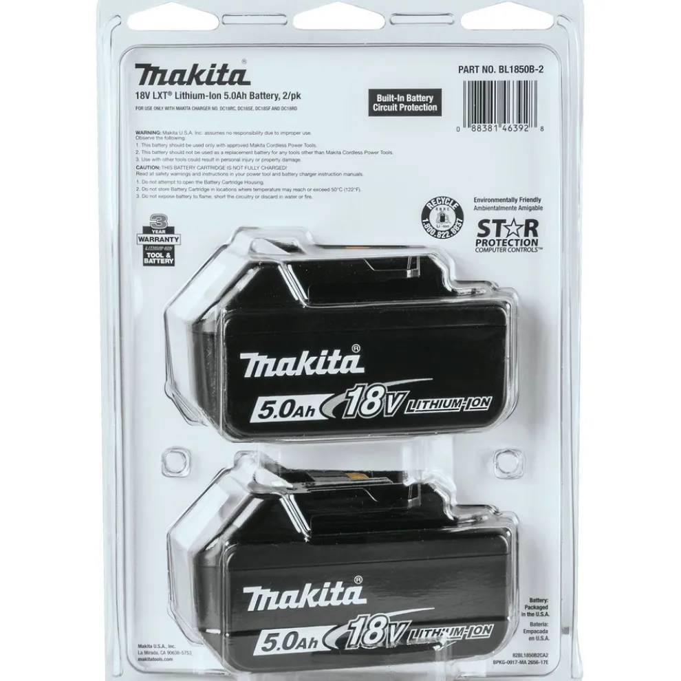Makita BL1850B-2 2-Piece 18V LXT Lithium-Ion Batteries (5 Ah)