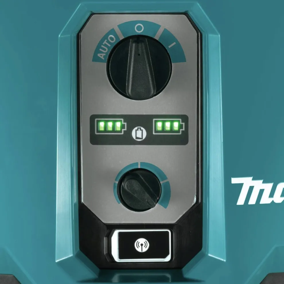 The 40V Max XGT Brushless 4 Gallon HEPA Filter Dry Dust Extractor with AWS (GCV04ZX) delivers over 2X more suction power with 148 CFM and 92 in. Water lift. The GCV04ZX features a three-stage HEPA filtration system which captures 99.97% of particulates .3 microns and larger. An automatic self-cleaning filter system compresses and expands the damper, which shakes dust from pre-filter, maintaining optimal suction, and longer filter life. The motor chamber is constructed with sound-absorbing materials for lower noise (only 67 dBA). The Dust Extractor comes equipped with cleaning accessories; anti-static hose (1 in. x 11 ft.) and three adapter cuffs (22, 24, and 38 mm) for dust extraction. It also includes a removable attachment for storing the hose and accessories on the dust extractor. Added features include an oversized on-off switch, variable speed control dial, and dual L.E.D. battery indicators. A large rubber bumper helps prevent damage to the work environment and a locking cover protects the batteries. Rear casters with locking levers prevent the vacuum from moving. It is equipped with Extreme Protection Technology (XPT), which is engineered for improved dust and water resistance for operation in harsh job site conditions. Auto-Start Wireless System (AWS) uses Bluetooth technology for wireless power-on and power-off communication between the equipped tool and dust extractor. Once connected via AWS, the AWS-equipped dust extractor will automatically power on or off when the AWS-equipped cordless tool starts or stops, running only when the tool is in use. This increases productivity on a single charge and reduces continuous noise at the job or work site. AWS is activated with an AWS Wireless Transmitter (198901-5, sold separately).