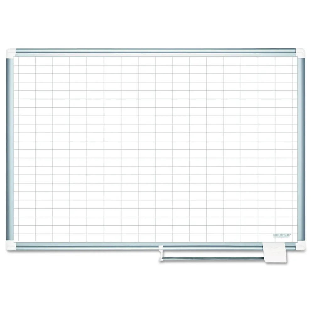 MasterVision MA0392830A 1 in. x 2 in. Grid 36 in. x 24 in. Aluminum Lacquered Steel Magnetic Dry Erase Planning Board with Accessories – White/Silver