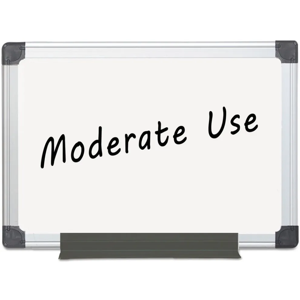 The Maya Non-Magnetic Dry Erase Board is an economic solution that combines great writing and cleaning performance with professional Maya frame quality. Designed for commercial applications, the Maya non-magnetic board is suitable for moderate use. This versatile board is double-sided allowing it to be flipped over for twice the life, making it an incredibly good value. Framed in sturdy heavy gauge aluminum, it has an easy 4-corner mounting system that can be positioned either vertically or horizontally, offering versatility when reconfiguring an office or where wall space is limited. The adjustable pen tray offers a convenient way to keep your writing utensils within quick reach.