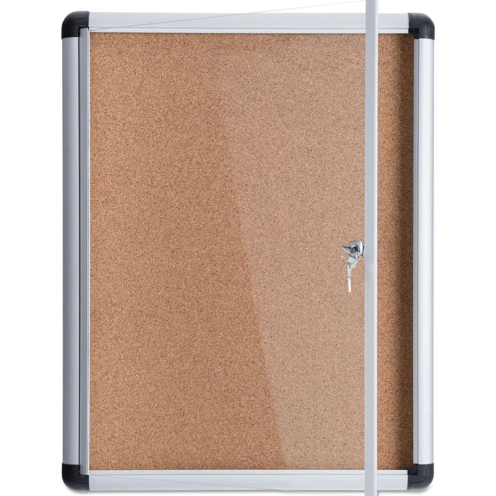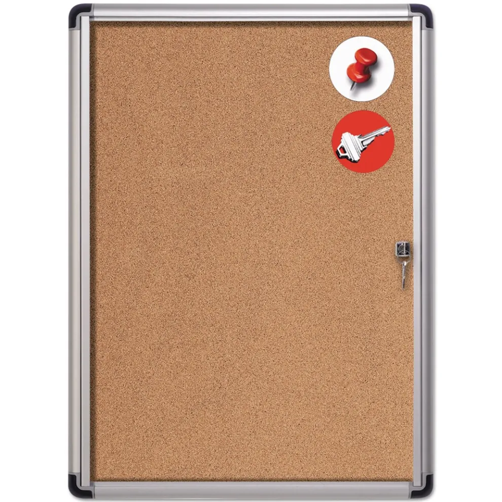 MasterVision VT630101690 28 in. x 38 in. Slim-Line Enclosed Cork Bulletin Board with One Door – Tan Surface/Satin Aluminum Frame