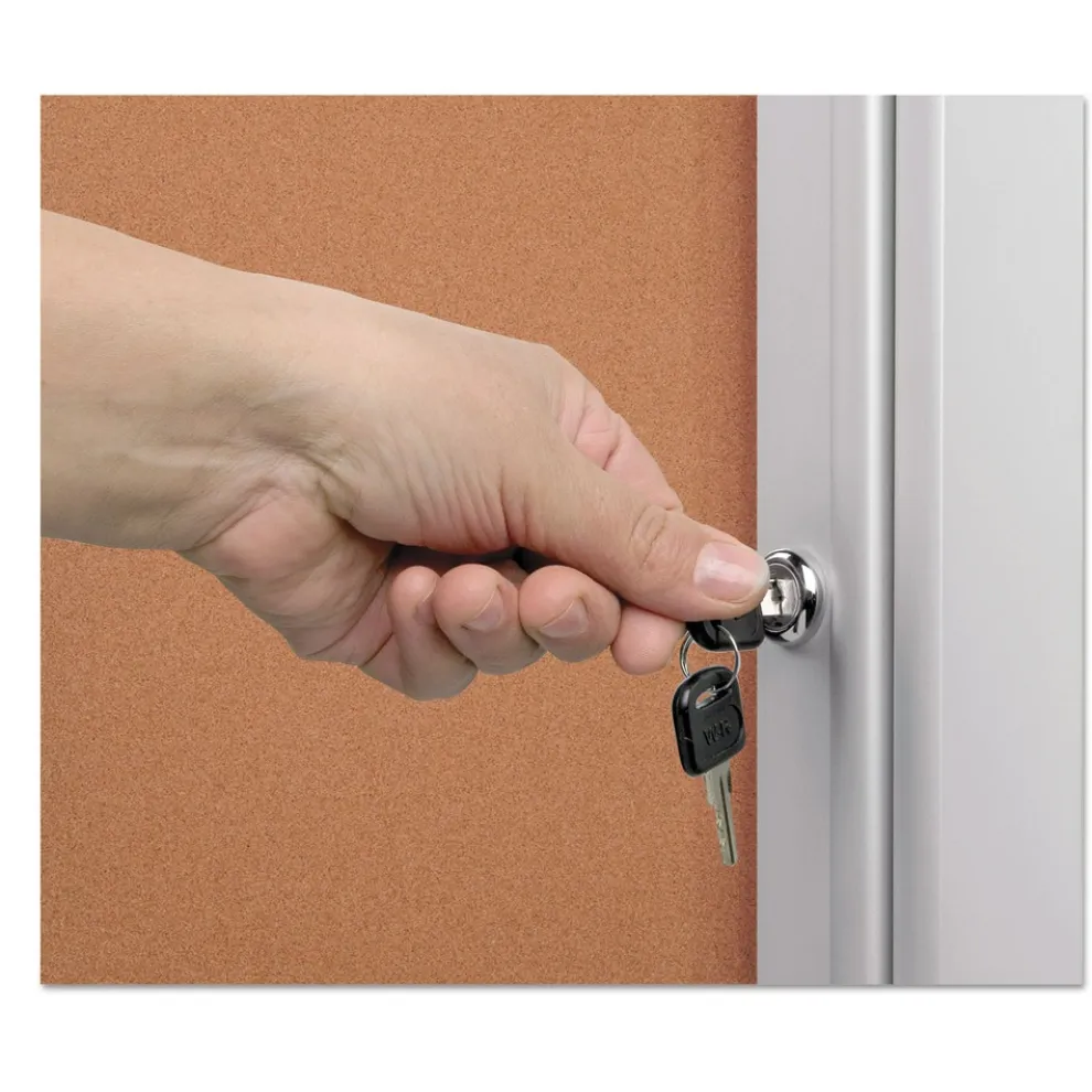 Enclosed boards showcase information in a beautiful way. These ultra slim formats allow perfect visibility without any obtrusion into walking spaces. Easy to hang and features a locking top-hinged swing door. Perfect for menus, schedules, timetables and other vital postings. The cork bulletin surface allows the posting of important messages and notes. Easy four corner mounting with hardware included.