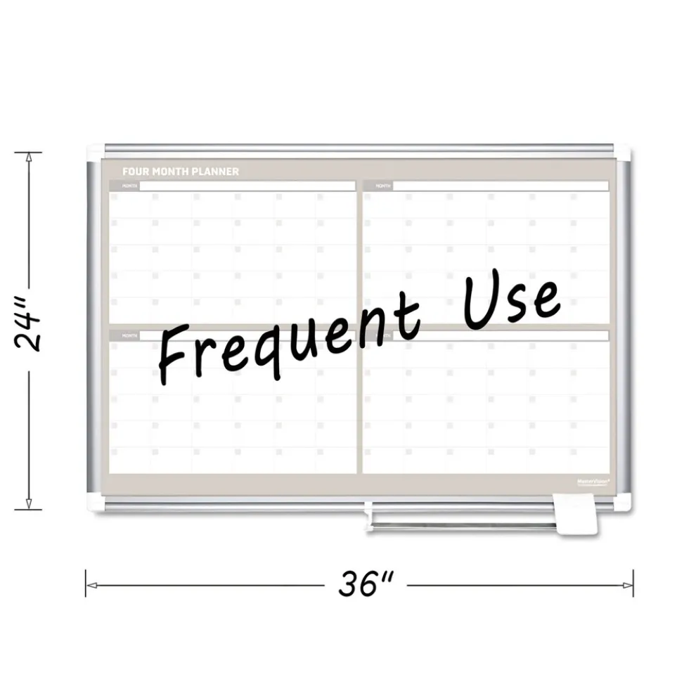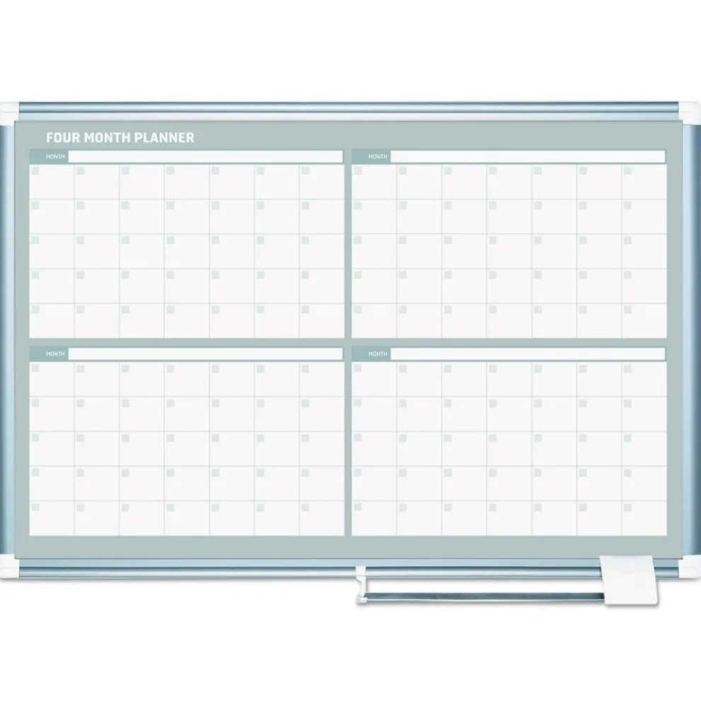 MasterVision GA03105830 36 in. x 24 in. 4-Month Planning/Scheduling Magnetic Dry Erase Calendar Board – White Surface, Satin Aluminum Frame