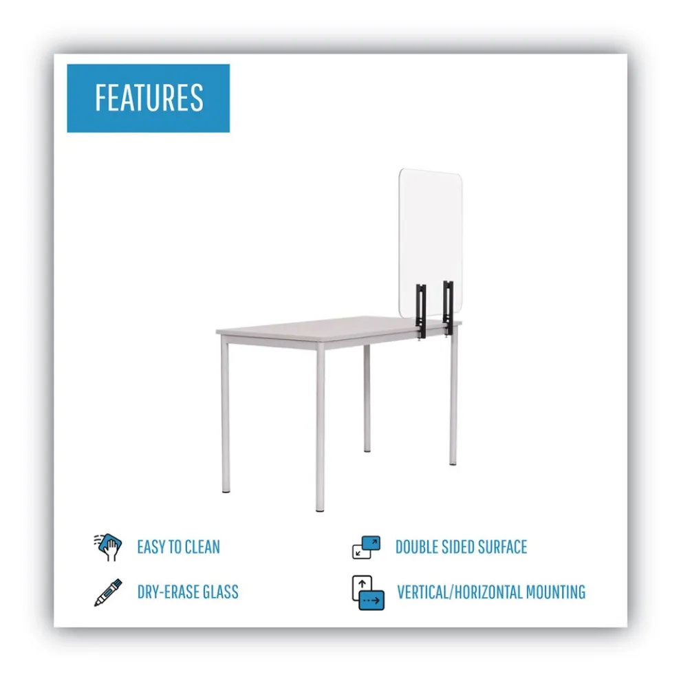 Due to the COVID-19 pandemic, social distancing and personal protection have become the new norm in order to stay safe. MasterVision introduces to you the Protector Series, designed specifically to protect you in public spaces. The Protector Frameless Glass Desktop Divider is an important tool that helps users maintain contact while still being protected. Ideal for shared office spaces and other public settings. Extremely easy to clean and sanitize. Features a pair of robust clamps which attach to the tabletop or desktop.