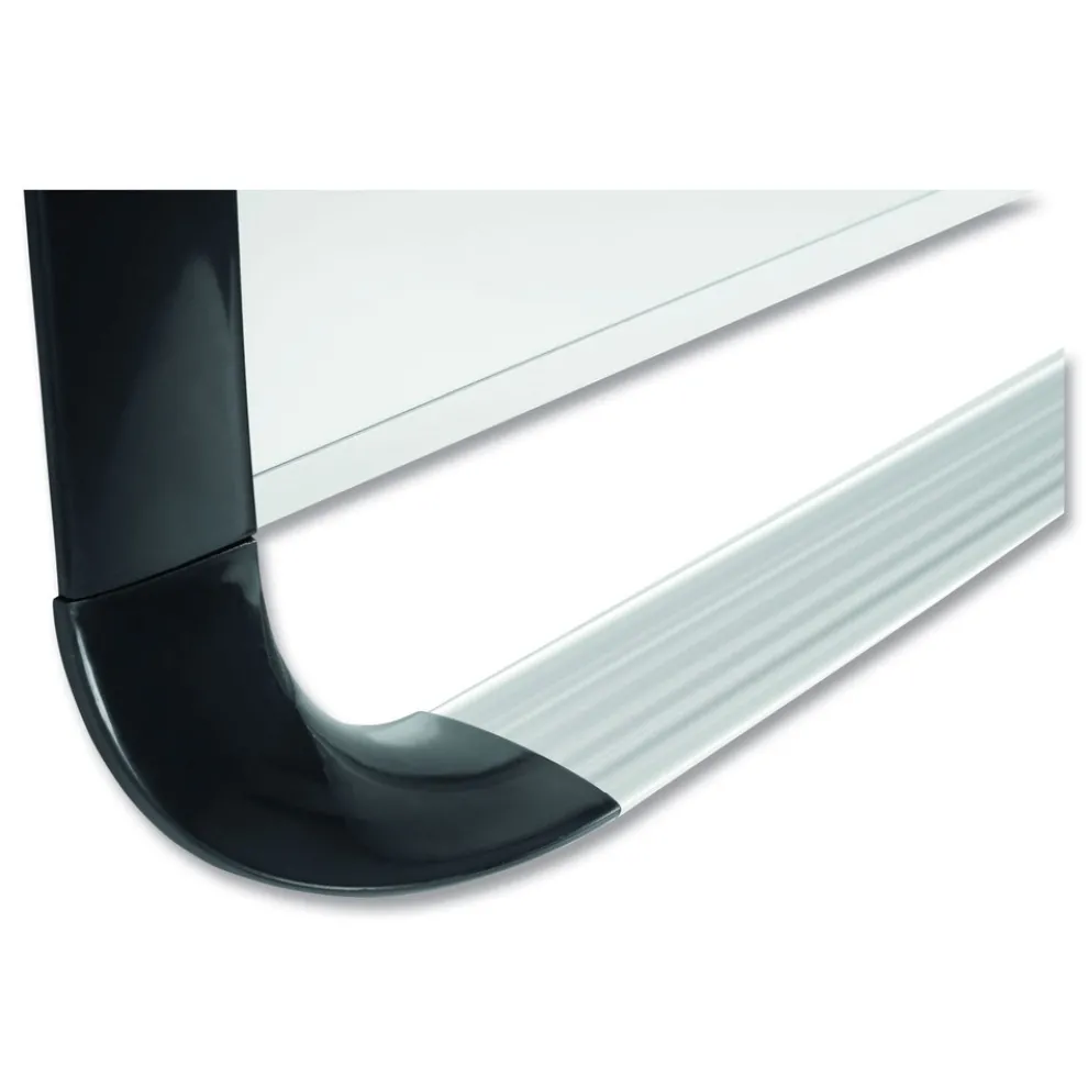 Magnetic Gold Ultra dry erase board allows you to post notes and messages as well as write. The lacquered steel surface is suitable for frequent use. Sleek, contemporary frame design combines aluminum and black plastic to provide a stunning yet sturdy effect that brings dry-erase into the 21st century. Full-length aluminum tray keeps what you need near to hand.