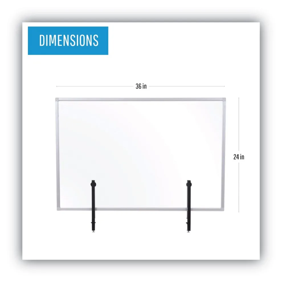 Due to the COVID-19 pandemic, social distancing and personal protection have become the new norm in order to stay safe. MasterVision introduces to you the Protector Series, designed specifically to protect you in public spaces. Transparent Glass Aluminum Desktop Divider allows users to stay protected while maintaining visibility. Ideal product for desks and tables across multiple areas such as offices, restaurants and other public settings. Features an aluminum frame and a pair of robust clamps which attach to the tabletop or desktop.