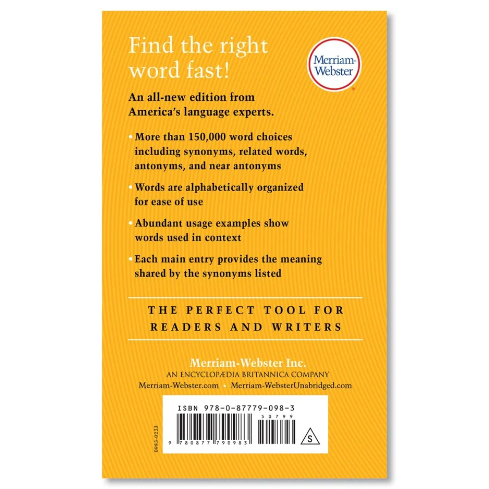 An all-purpose thesaurus at an attractive price. More than 150,000 word choices, including synonyms, antonyms, related words and idiomatic phrases. Abundant usage examples. Alphabetically organized for ease of use. Brief definitions describe shared meanings. Perfect for work, school, self study, or simply browsing!