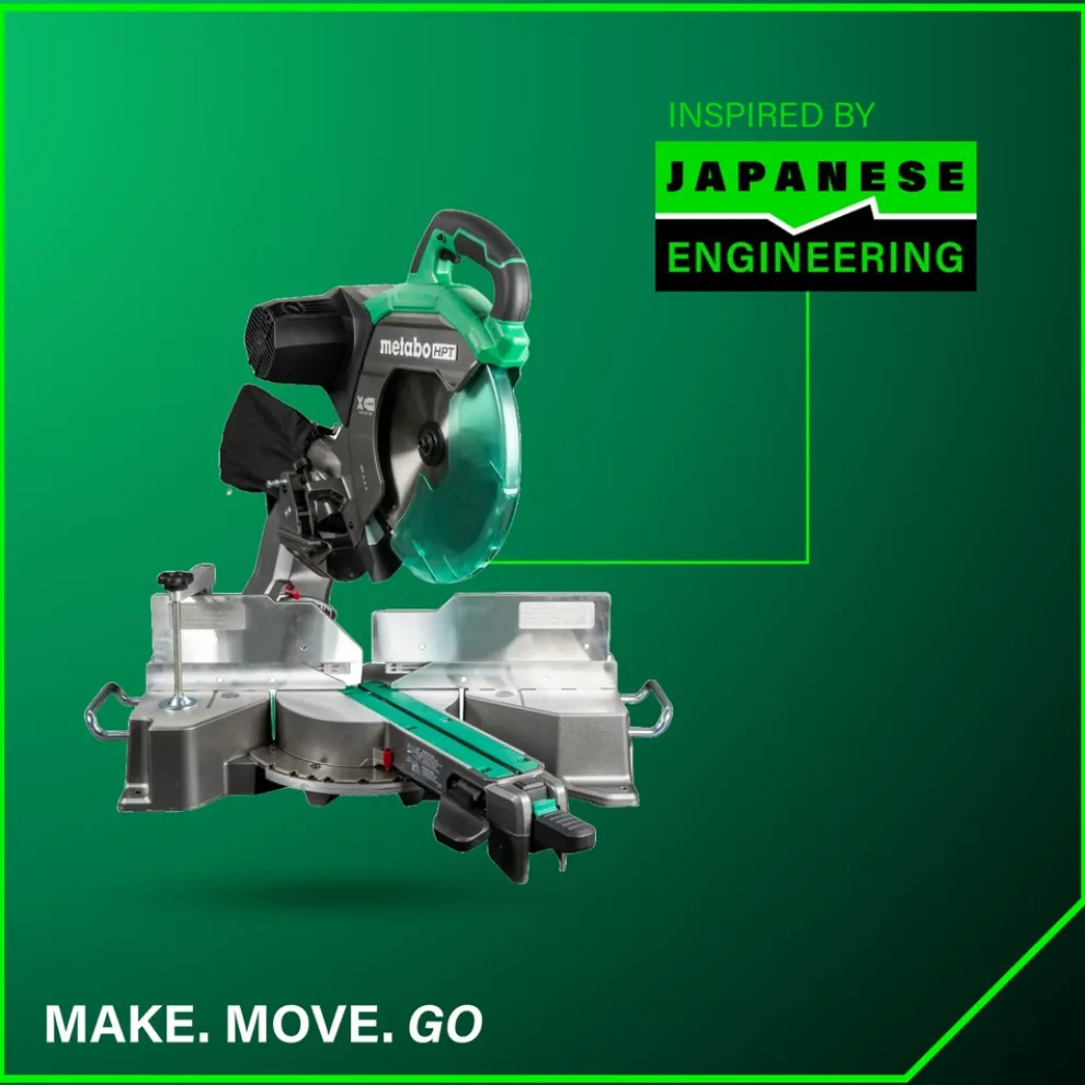 The Pro Preferred Brand of Pneumatic Nailers introduces the 12 in. Dual Bevel Sliding Miter Saw (C12RSH3). This miter saw delivers a no-load speed of up to 4000 RPM. it also features a 45 degrees to the left and 57 degrees to the right for cutting options. In addition, the saws Xact Cut Shadow Line clearly marks the cut line, giving the user more visibility for accurate cuts and a safer environment in any lighting situation. With all of these features and a 5-year professional warranty, you can rest easy knowing that Metabo HPT has you covered.