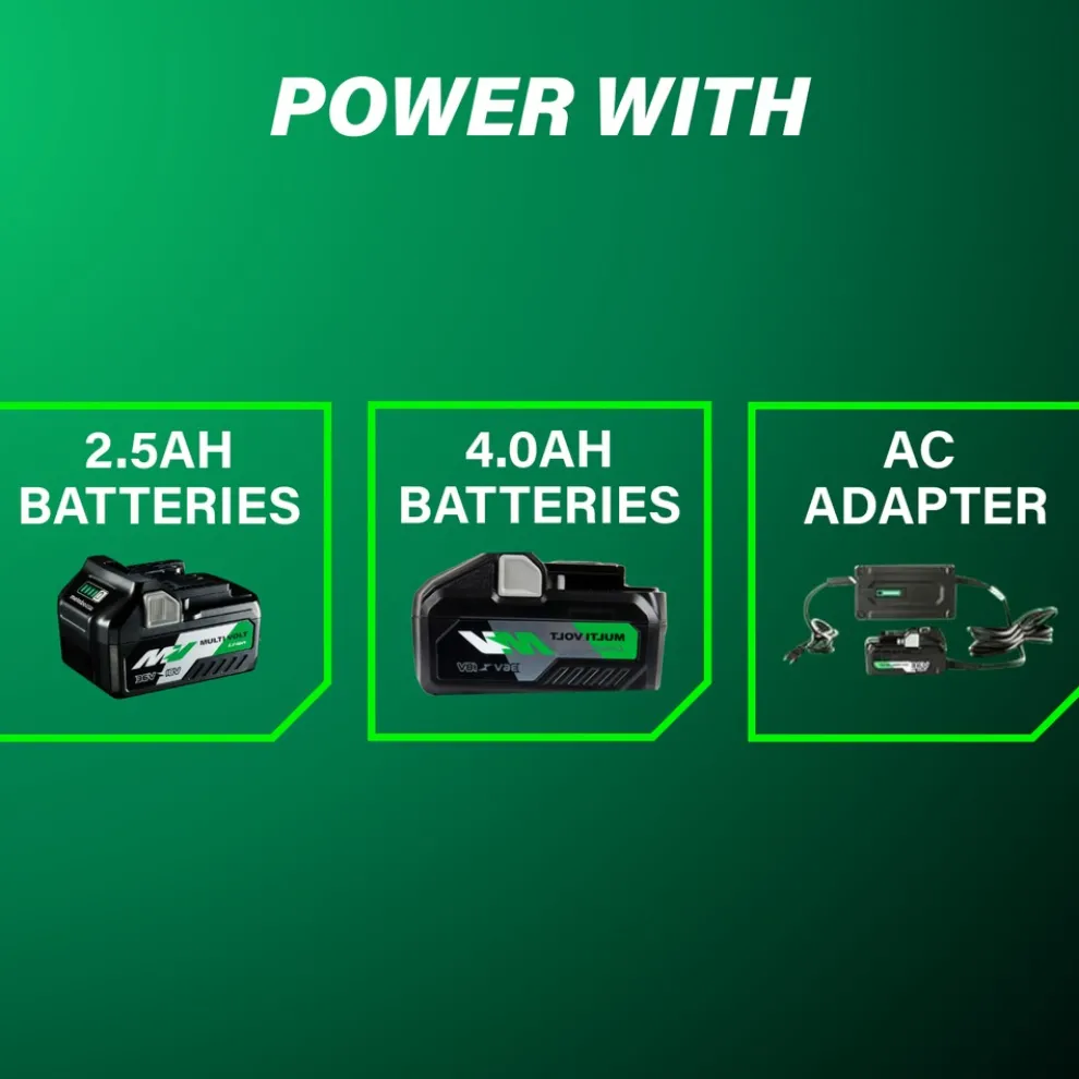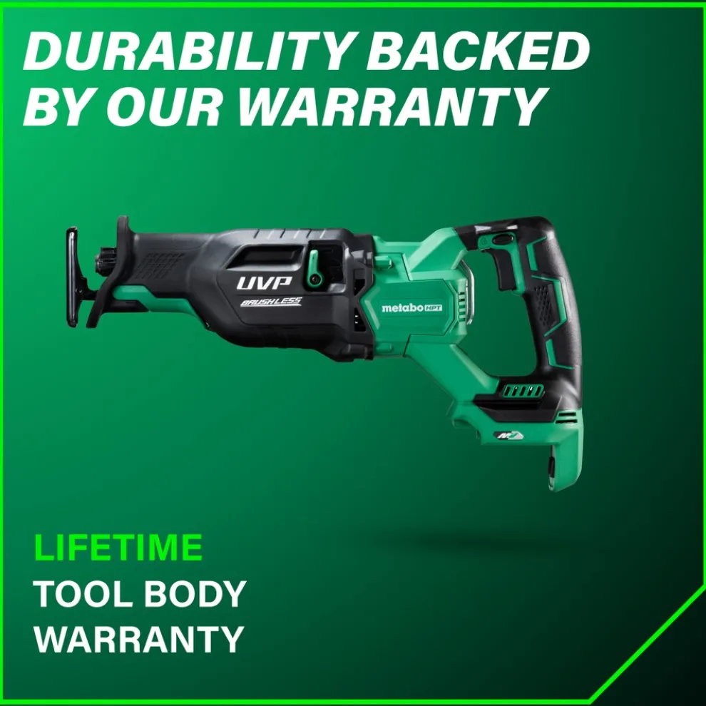 The Metabo HPT MultiVolt reciprocating saw offers the power and convenience pros demand with 36V battery power or use the revolutionary AC adapter for all day runtime. With orbital action and a 4-stage speed selector ranging from 1700 SPM to 3000 SPM(Strokes per Minute), the MultiVolt reciprocating saw is up to even the toughest jobs. Metabo HPT introduces MultiVolt: a cordless and or corded solution that offers the power of a corded tool and the freedom of a cordless platform. MultiVolt gives you the choice to operate all MultiVolt tools with a battery or plug into an outlet for ultimate versatility, safety and value. You no longer need both a cordless and corded tool. MultiVolt is a one tool solution. Versatility, corded power, all day run time, works with all 36 V MultiVolt tools, 20 ft. cord for more maneuverability, can be used with generators, or extension cords with little to no power. Power similar to corded tools, cordless freedom, works with all 36 V MultiVolt tools, 4 Ah run-time, and uses higher capacity cells for more power and longer life. Imagine a cordless jobsite, where you decide when to switch from cordless to corded power based on your application. Works with all 18V Hitachi or Metabo HPT slide-type tools at 8 Ah run-time. Lifetime tool warranty and 2-year lithium ion battery warranty. Finally, an affordable battery platform.