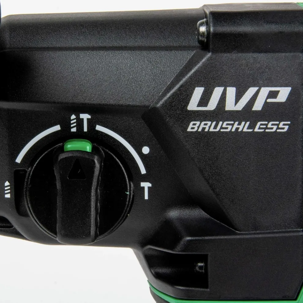 The 36V MultiVolt Brushless 1-1/8 in. SDS Plus Rotary Hammer with UVP model – DH3628DAQ4 (Tool Body Only) offers corded performance with the convenience and versatility of a cordless tool. Go all day with less fatigue as its reduced weight design and added User Vibration Protection (UVP) makes drilling easier. Work more efficiently with the auto stop feature that allows for set times when drilling repetitively. Control the power with its 2-speed setting functions. Work safely as the Reactive Force Control (RFC) stops the motor before the entire tool jerks if the tool bit is suddenly overburdened during operation. Use the LED level with a built in sensor that will detect the tilt of the tool and indicate when straight for precising drilling. This results in less time and money being spent adjusting skewed anchor bolts or re-drilling anchors. Work cleaner and safer with the optional dust extractor (#379135M). The DH3628DAQ4 36V Brushless Cordless 1-1/8 in. SDS Plus Rotary Hammer is part of the expanding MultiVolt system of power tools from Metabo HPT. It accepts any MultiVolt battery for extreme power and runtime and can also accept the unique AC Adapter (ET36A) to plug in for all day runtime, offering ultimate versatility and power on the go. Also available kitted – model DH3628DA.