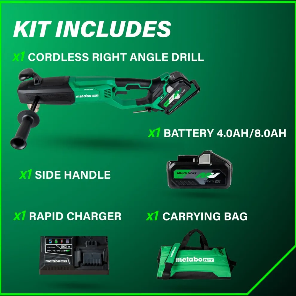Metabo HPT D36DYAM 36V MultiVolt Lithium-Ion Brushless 1/2 in. Cordless High Power Right Angle Drill Kit (4 Ah/8 Ah)