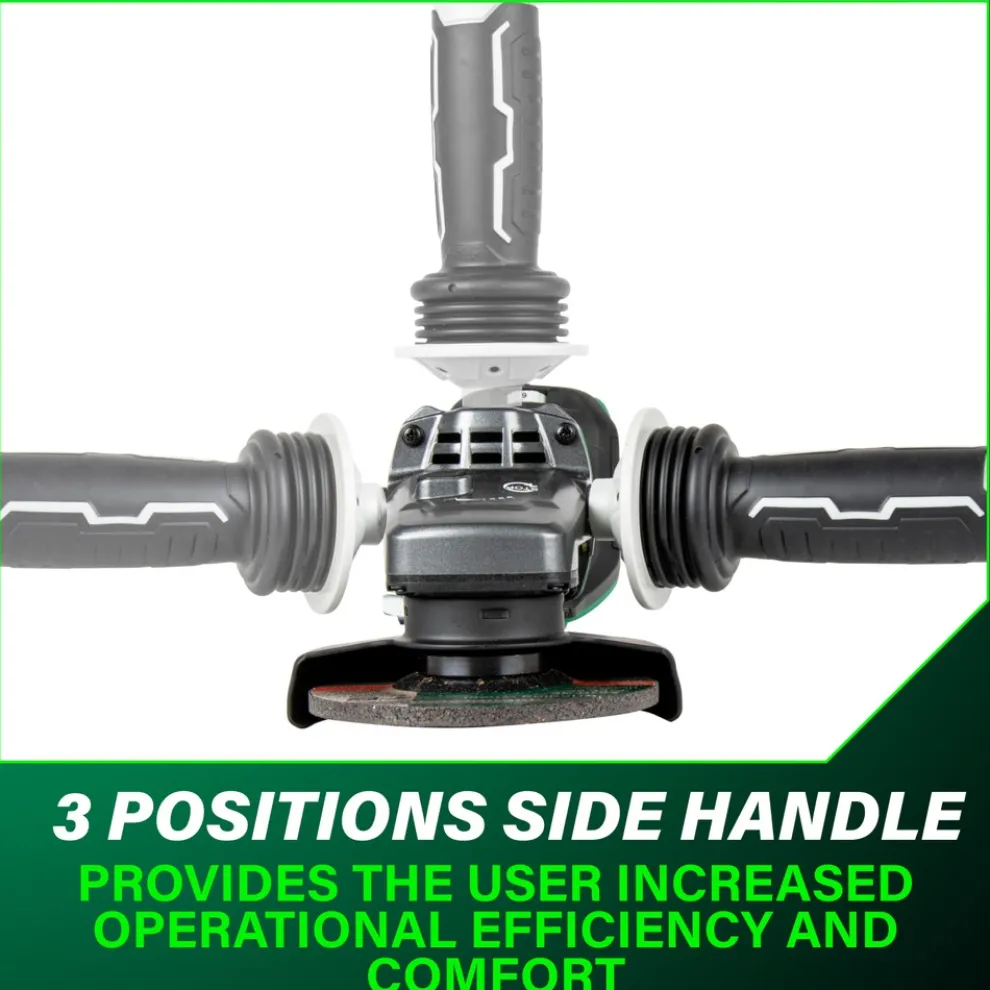 Designed for continuous operation, the slide switch with lock-on feature allows for comfortable, hands-free use during extended tasks. With six speed settings plus an auto mode, this grinder is ideal for polishing, finishing, removing paint, rust, burrs, grinding, and rough grinding applications. Powered by a robust brushless motor, it offers a no-load speed range of 3,200 to 10,000 RPM, making it suitable for a wide variety of jobs. The ultra-efficient brushless motor extends tool life by eliminating maintenance needs for armatures or carbon brushes. Safety is a top priority with features including drop shutoff, electronic brake, kickback protection, zero voltage restart, soft start, and overload protection. Enhanced user comfort and control come from a tool-less wheel guard and a 3-position anti-vibration side handle, increasing efficiency and reducing fatigue. A removable dust filter protects the motor from dust and debris, ensuring consistent performance and longer tool life.