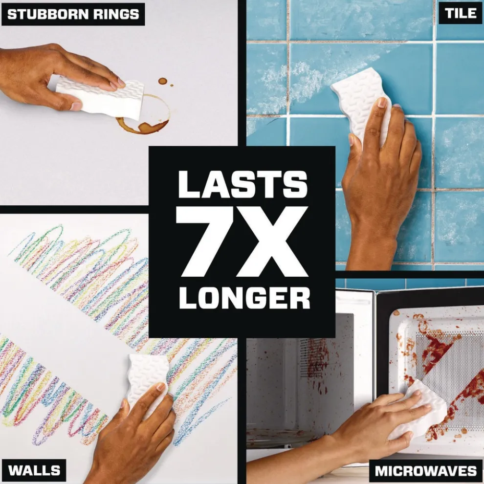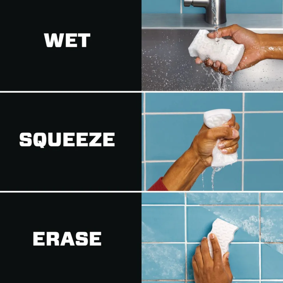 Disposable, soft pads erase set-in dirt and grime quickly and easily.