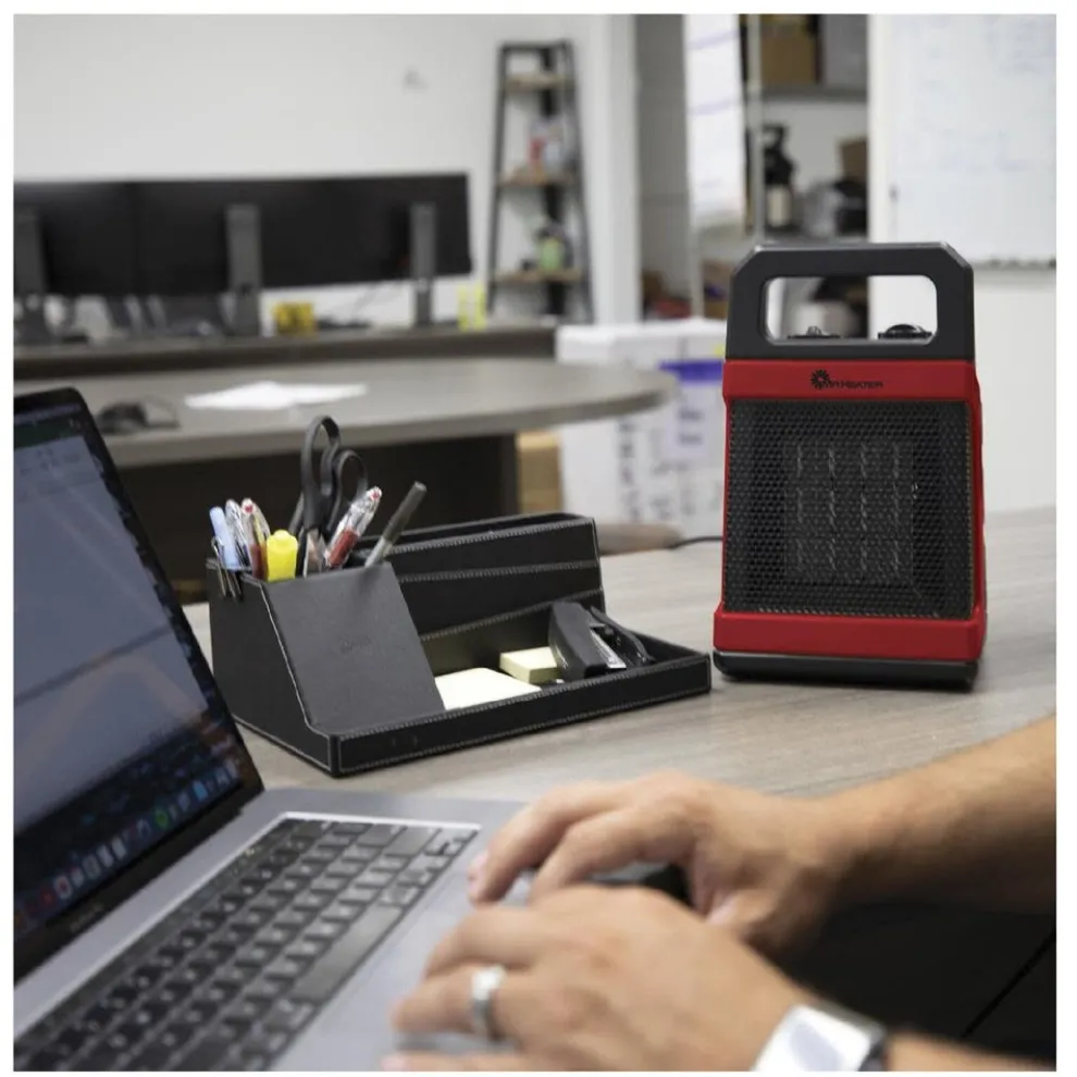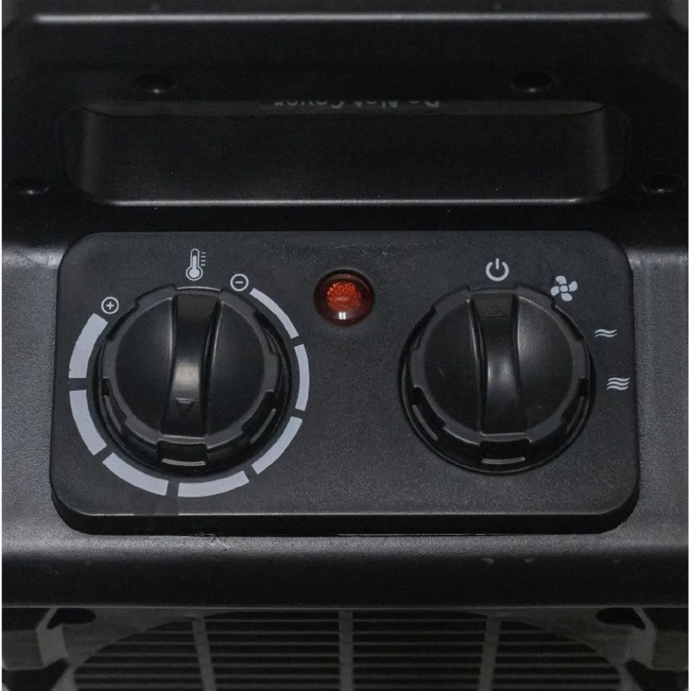 For a little extra heat, the Portable Forced Air Electric Heater will fit your needs. Its two heat settings provide up to 5118 BTUs. Powered by a quiet fan, the warmth spreads to cover 170 sq ft. A small footprint and built-in handle keep the heater portable. It is controlled with a thermostat so your space will stay comfortable at your desired temperature. Whether it is drafty at the office or you want some extra warmth while relaxing on the couch, The Portable Forced Air Electric Heater is your indoor heat source solution.
