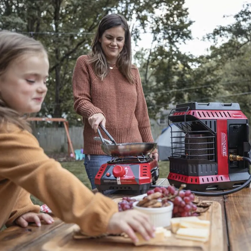 The 5000 – 8000 Infini-variable controls and all-new fiber mesh burner make cooking and cleanup a breeze. This portable cooker connects directly to the Buddy FLEX Heater using the integrated 28 in. Hose and custom quick connect fitting to ensure your safe and protected cooking in any environment