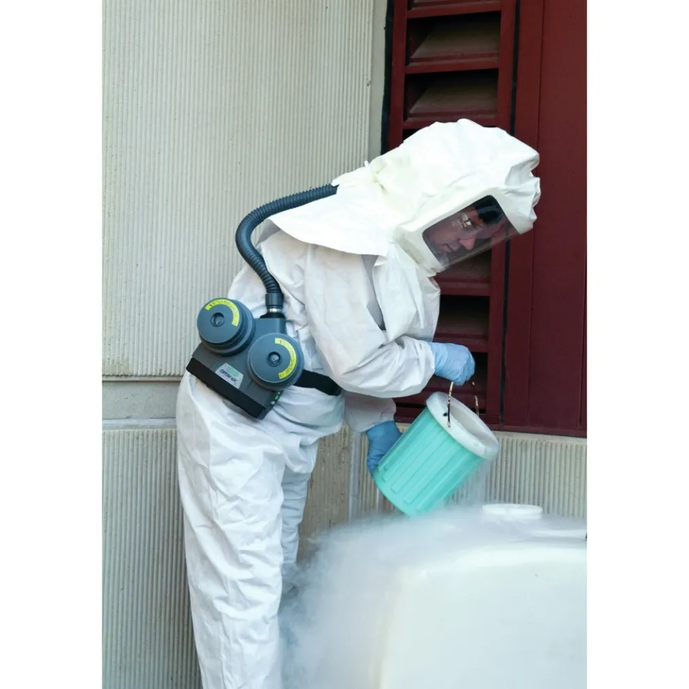 The low-profile OptimAir TL Powered Air-Purifying Respirator combines state-of-the-art design with superior smart features. The unit packages the motor blower, cartridges, and battery in a single hip-hugging design for lightweight comfort and fit. The low profile motor blower offers optimal airflow through a crushproof breathing tube, while the ergonomic battery pack allows for free movement within confined spaces. The unit automatically adjusts flow rates for altitude via an internal pressure sensor, while the cutting-edge design permits fast, accurate change-out of cartridges, hoods and batteries. The standard kit includes motor blower, smart charger, standard battery, hose, and decon belt.