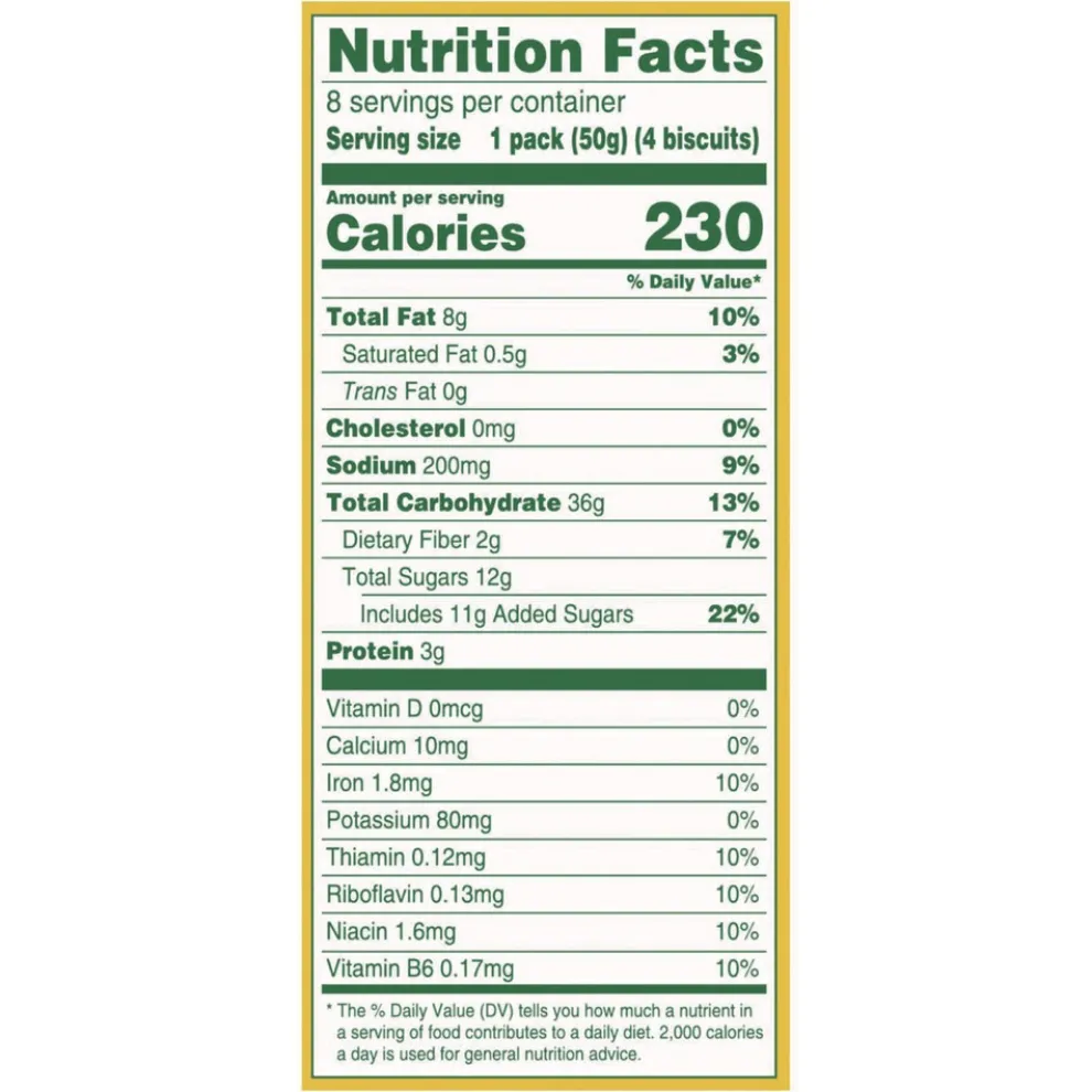Lightly sweetened, tasty, crunchy biscuits provide a steady stream of energy for up to four hours, fueling you all morning long. Whole grain ingredients keep you full and energized while also delivering essential fiber, vitamins and minerals. Try them with fruit, yogurt and a hot beverage for the perfectly balanced, deliciously nutritious breakfast. These crunchy biscuits feature the goodness of whole grains. Conveniently portioned for on-the-go breakfasts or snacking, each biscuit provides sustained energy, making it a tasty and nutritious choice for starting your day on a flavorful note.