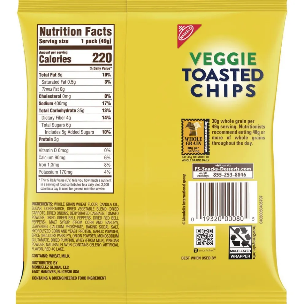 (60/Carton) 1.75 oz. Bag Wheat Thins Toasted Veggie Chips – 80