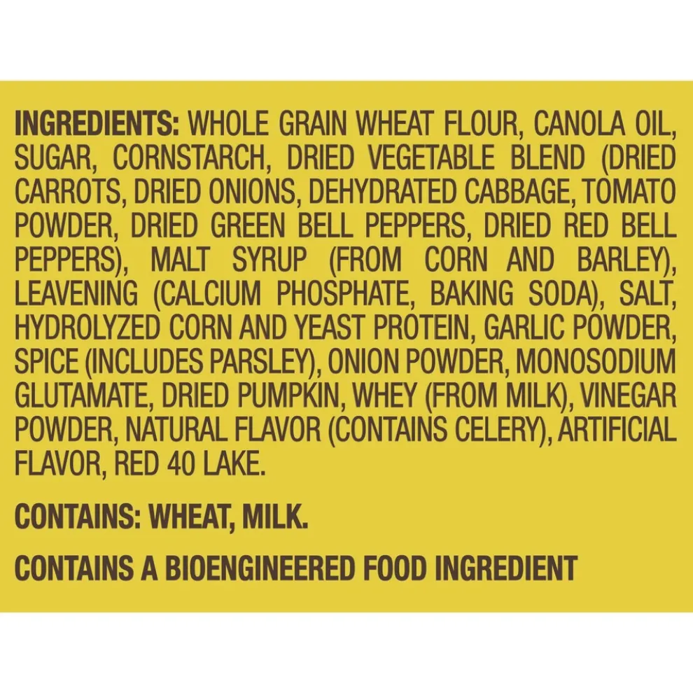 These 100% whole grain wheat chips are toasted, not fried and have a delicious veggie flavor. Whole grain wheat veggie chips snack packs are convenient wholesome snacks to take on the go, lunch snacks, school snacks, office snacks, party favors or care packages. Ideal for stocking your foodservice pantry, workplace stock room or vending machine. The snack pack servings make portioning easy and keep the crackers fresh.