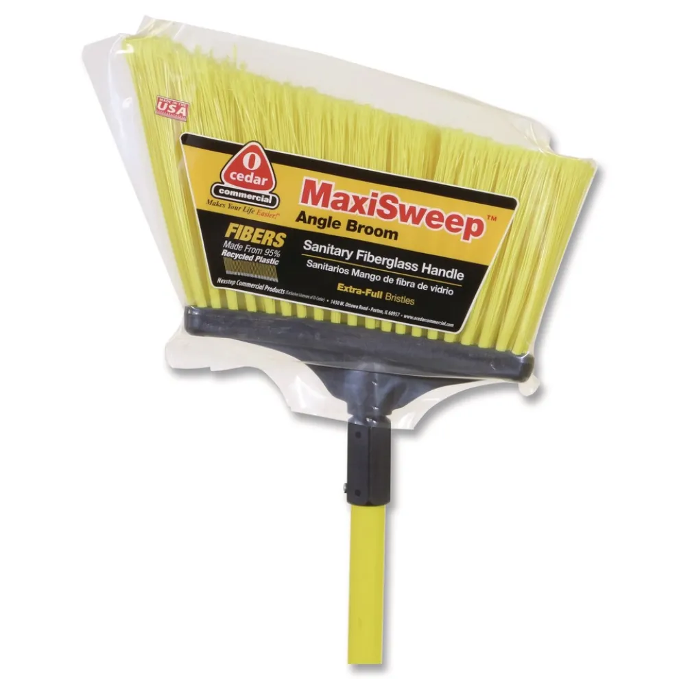 Nexstep Commercial Products 91355 MaxiSweep Angle Broom With Fiberglass Handle, 57-in Overall Length, Yellow/Black