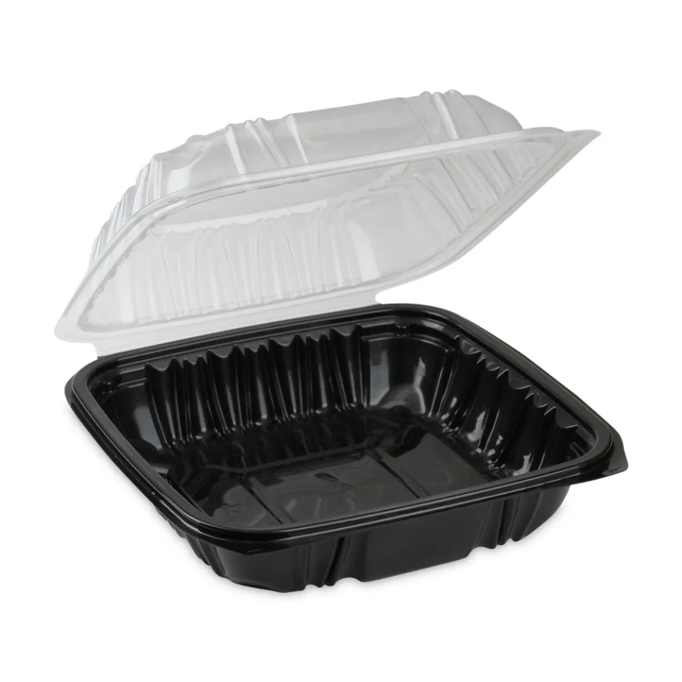 Pactiv Corp. DC757100B000 28 oz 7.5 x 7.5 x 3 EarthChoice Vented Dual Color Microwavable Plastic Hinged Lid Container – Black/Clear (150/Carton)