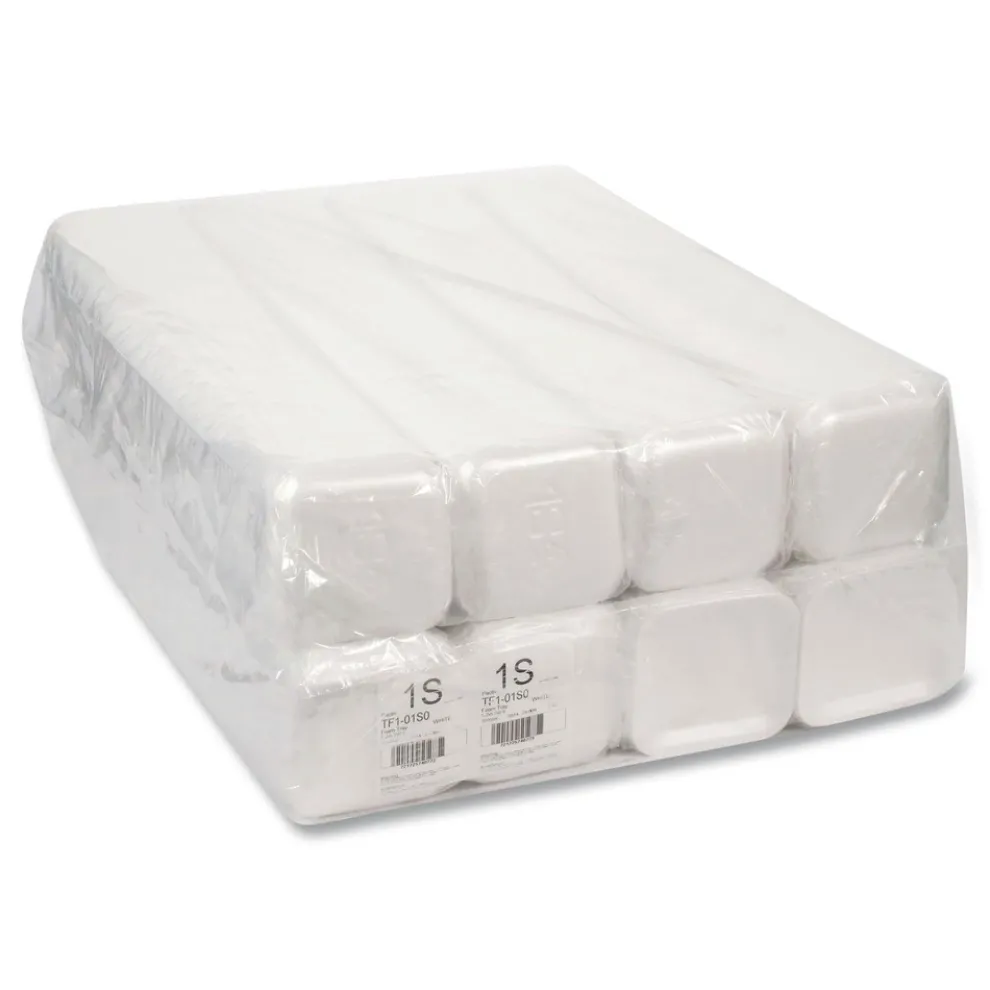 (1000/Carton) 5.1 in. x 5.1 in. x 0.65 in. #1S Foam Supermarket Tray – White – 0TF101S00000