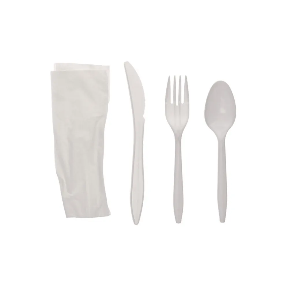 (250/Carton) Individually Wrapped Mediumweight Plastic Fieldware Cutlery Fork/Knife/Napkin/Spoon Kit – White – FKFSKWNCH