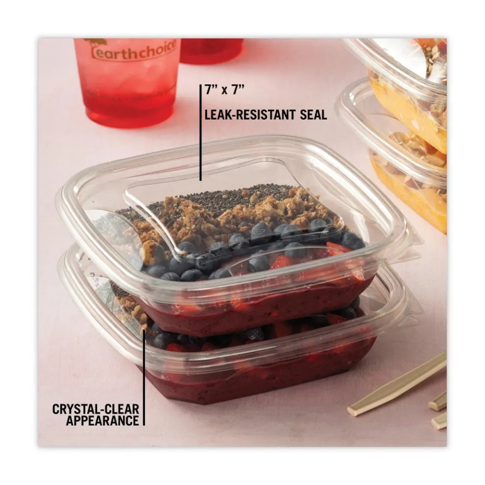 (300/Carton) EarthChoice 7.38 in. x 7.38 in. x 0.26 in. Square Recycled Bowl Flat Lid – Clear – SACLF07