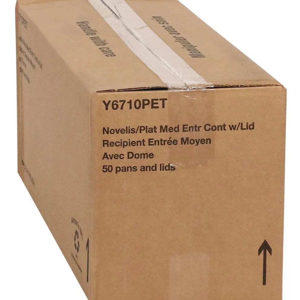 Pactiv Corp. Y6710PET 9.8 in. x 7.8 in. x 1.3 in. 46 oz. Classic Carry-Out Aluminum Container with PET Dome Lid – Silver/Clear (50/Carton)