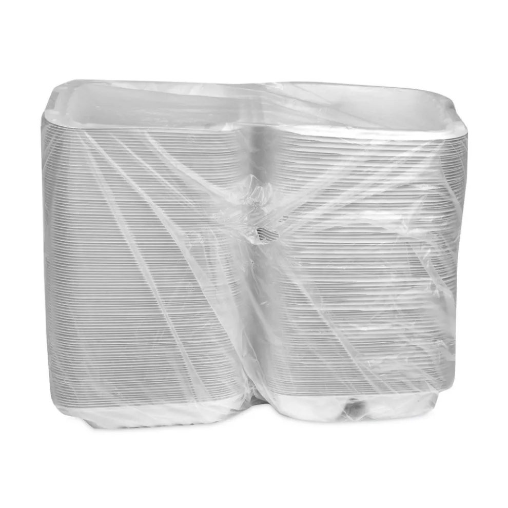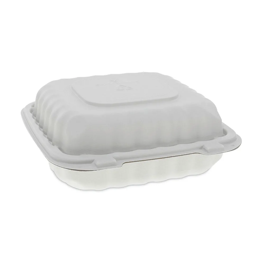 (200/Carton) EarthChoice SmartLock 8.31 in. x 8.35 in. x 3.1 in. Microwaveable MFPP 3-Compartment Hinged Lid Containers – White – YCN808030000