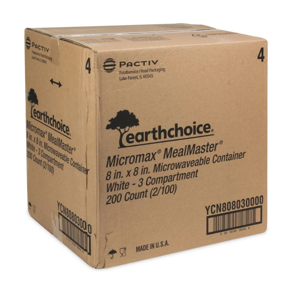 Pactiv Corp. YCN808030000 EarthChoice SmartLock 8.31 in. x 8.35 in. x 3.1 in. Microwaveable MFPP 3-Compartment Hinged Lid Containers – White (200/Carton)