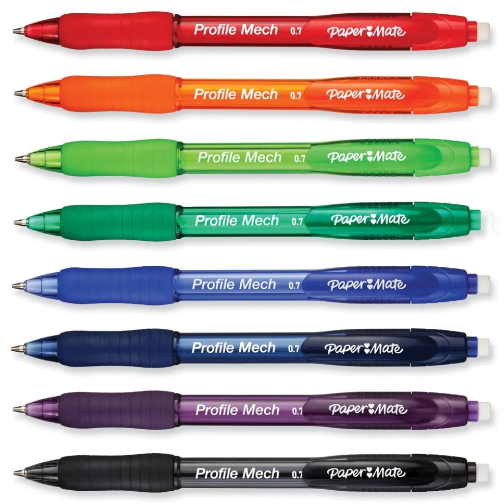Paper Mate 2105705 0.7 mm HB (#2) Profile Mechanical Pencils – Black Lead/Assorted Barrel Colors (8/Pack)