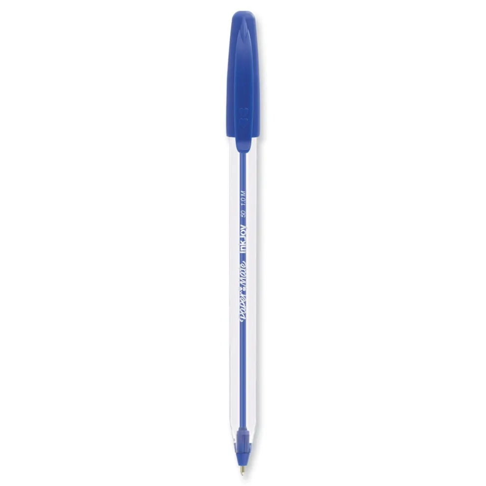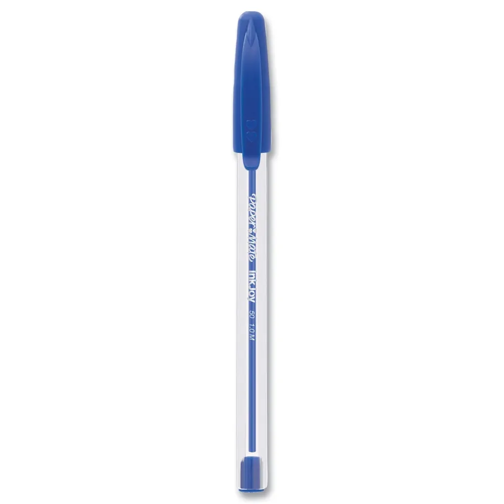 Paper Mate 2014534 Medium 1 mm InkJoy 50ST Stick Ballpoint Pen – Blue Ink/Clear Barrel (60/Pack)