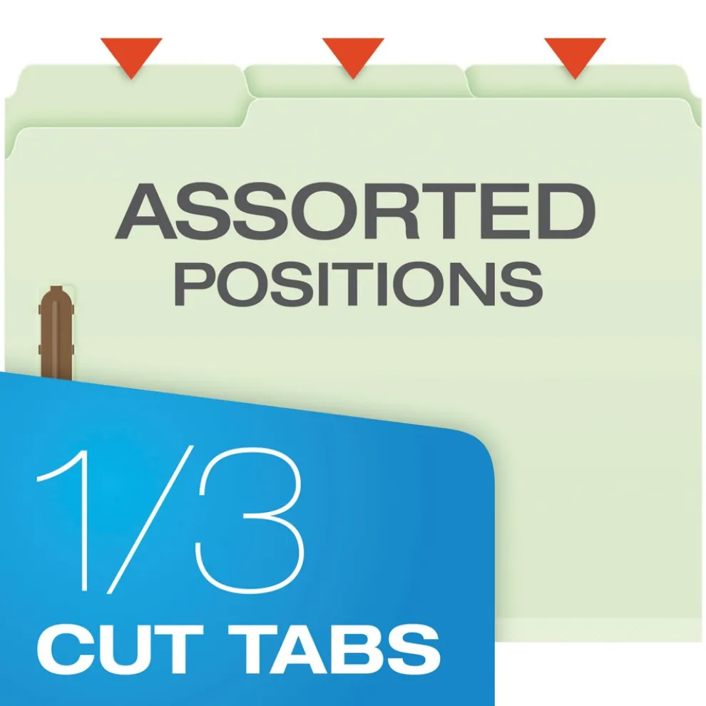 Pendaflex 17182EE 1/3-Cut Tabs 3 in. Expansion 2 Fasteners Letter Size Heavy-Duty Pressboard Folders with Embossed Fasteners – Green (25/Box)