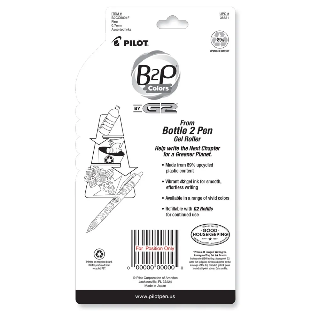 Pilot 36621 B2P Bottle-2-Pen Recycled Fine 0.7 mm Gel Pen – Assorted Ink and Barrel Colors (5/Pack)