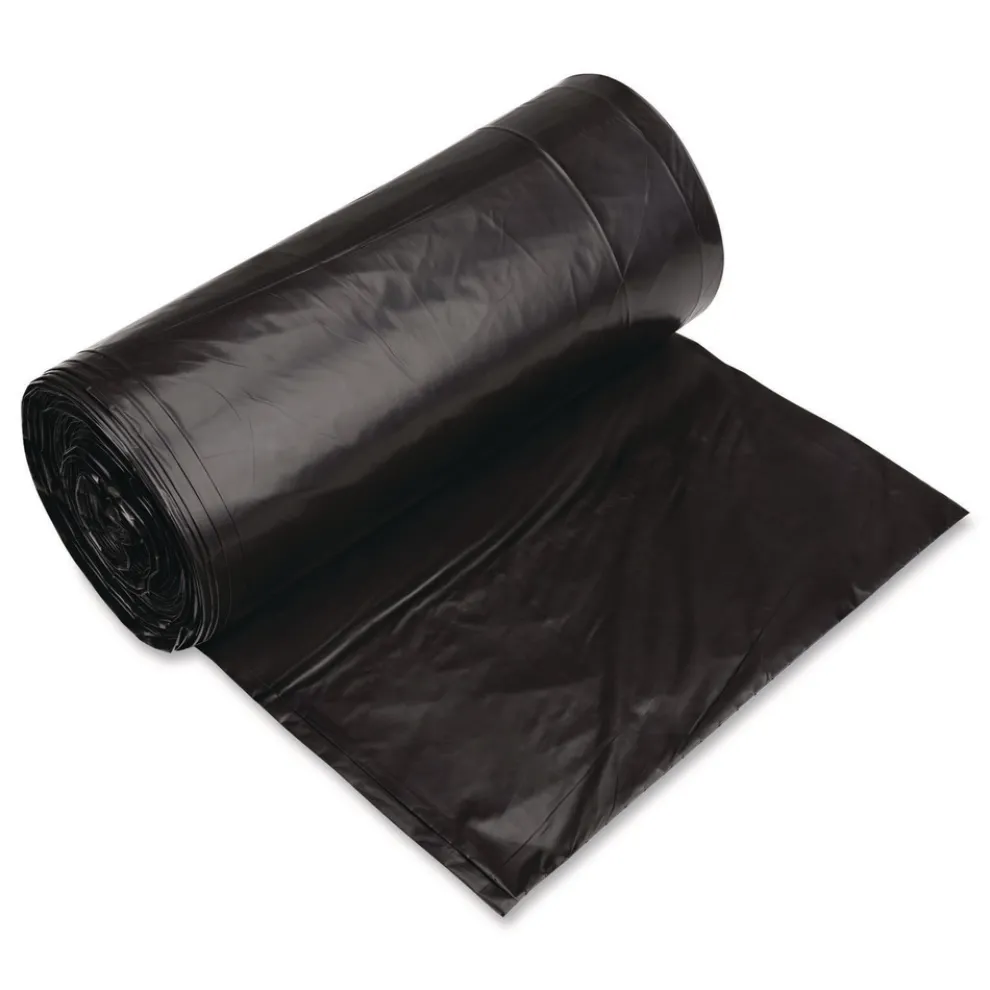 Pitt Plastics EC385812K Eco Strong Can Liners 60 gal 1.35 mil 38-in x 58-in Black Perforated Roll 100/Carton