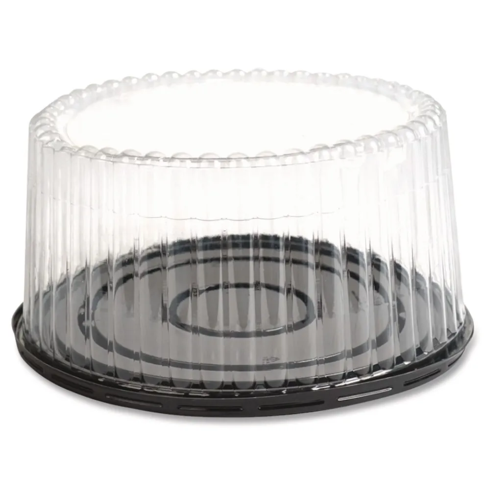 Plastifar 18361 Bakery Containers, 8-in Cake, 9.7-in Diameter x 5-in h, Black/Clear, 100/Carton
