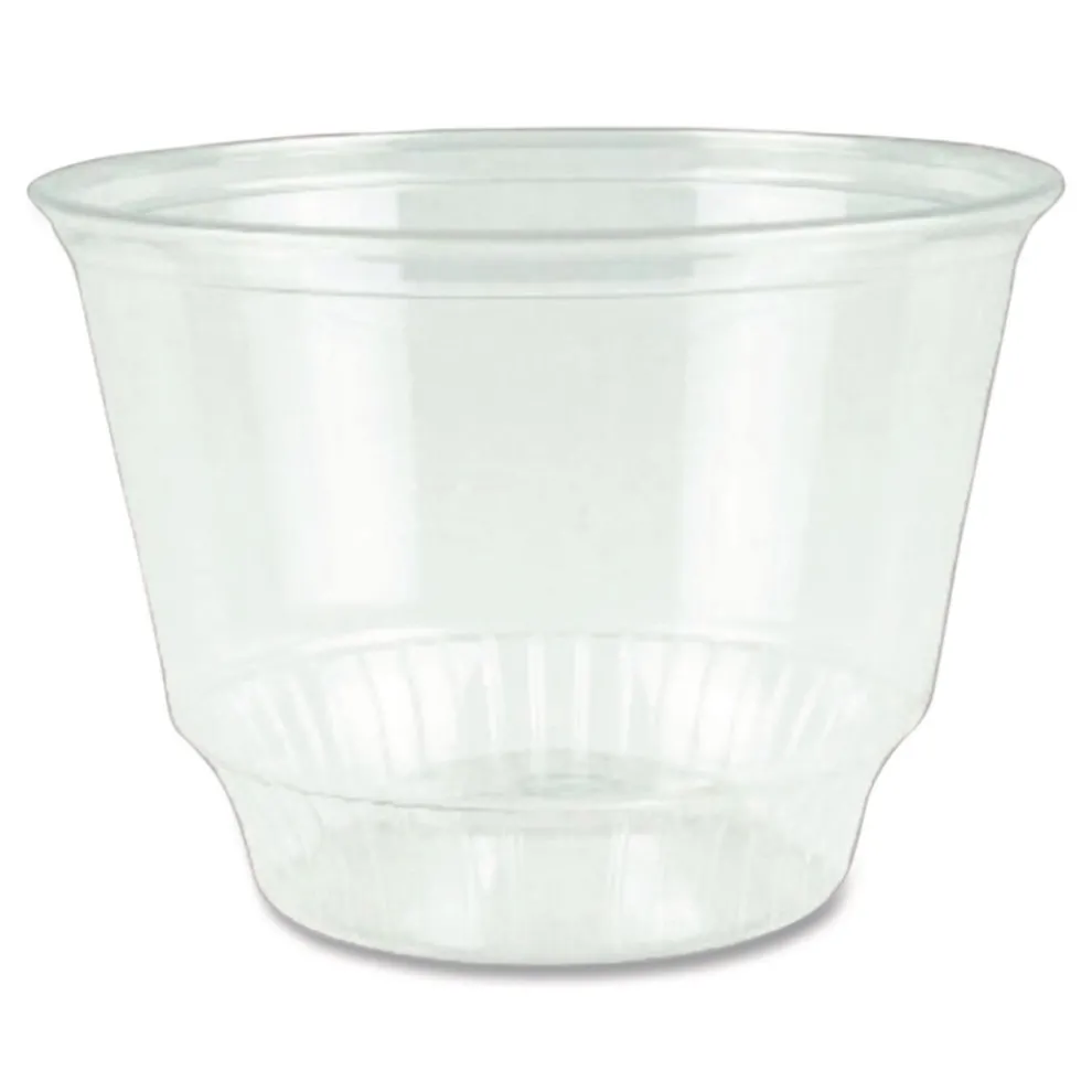 Outsanding clear cups ideal for cold beverages, on-the-go snacks, ice cream or breakfast parfaits and other light snacks. Convenient for breakrooms and kitchens. Stackable.