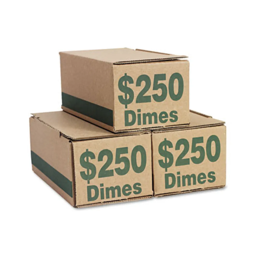 8.06 x 3.31 x 3.19 Corrugated Cardboard Coin Storage with Denomination Printed On Side – Green (50/Carton) – 94190088