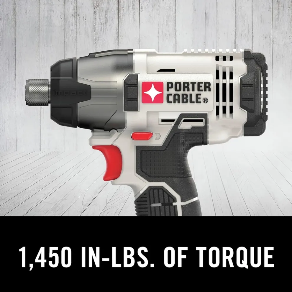 The Porter-Cable PCC641LB 20V MAX 1.3 Ah Cordless Lithium-Ion 1/4 in. Hex Impact Driver Kit is great for decking screws, drywall screws, lag screws, lag bolts, self-tapping screws, and ledger lock screws. It features a high torque motor that delivers 1,450 in-lbs. of torque, with a high performance motor for quick fastening applications. This unit is compact and lightweight which allows the user to work in tight areas and minimizes user fatigue.