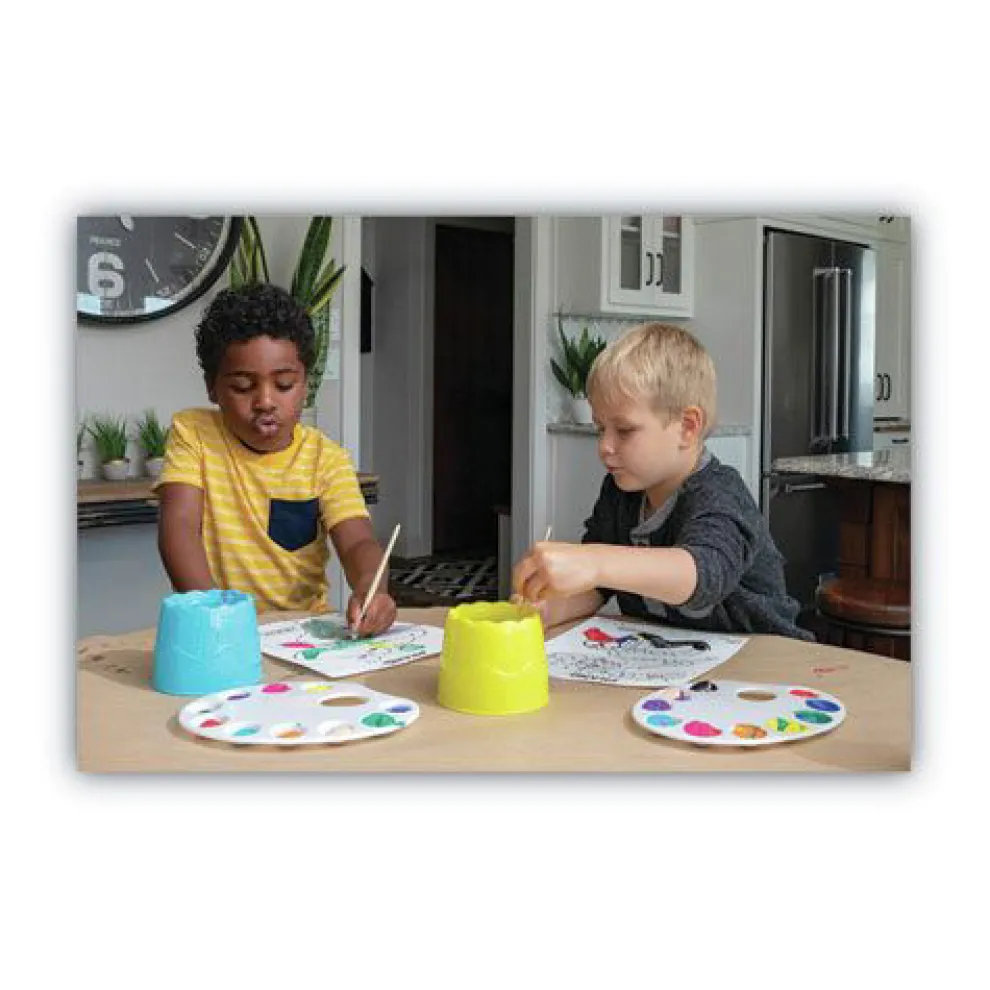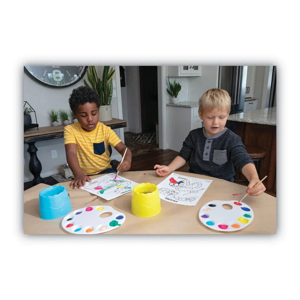 Non-settling brilliant colors require no shaking and have a bright lay down. Perfect for small children, daycare centers or any classroom setting. Kid-pleasing colors wash easily from skin and most surfaces, including clothing! No stirring or shaking, paint is ready-to-use. Dries to satiny finish that won’t rub off on hands or clothing.