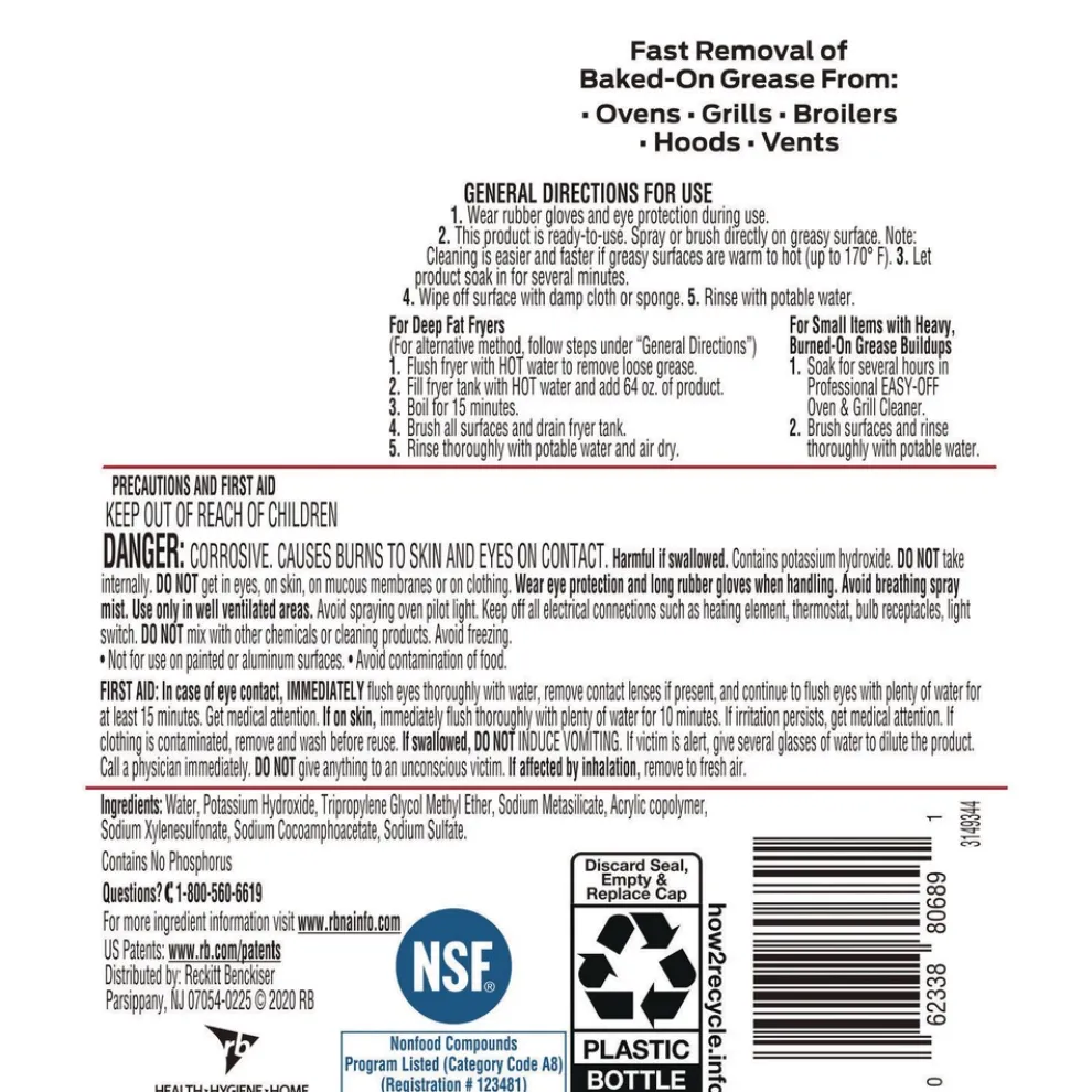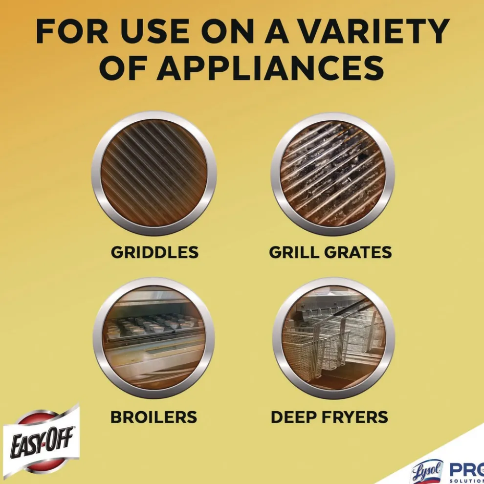 Get grease-cutting performance that powers through tough, baked-on oven messes in several minutes. Professional EASY-OFF Oven and Grill Cleaner gives staff a fast-acting formula can be used on warm and cold ovens for added convenience. Add a versatile oven and grill cleaner to your commercial kitchen and keep barbecue grills, broilers, ovens, stainless steel fixtures, and more looking and running their best. The non-flammable formula clings to vertical surfaces for greater coverage and a deeper clean.
