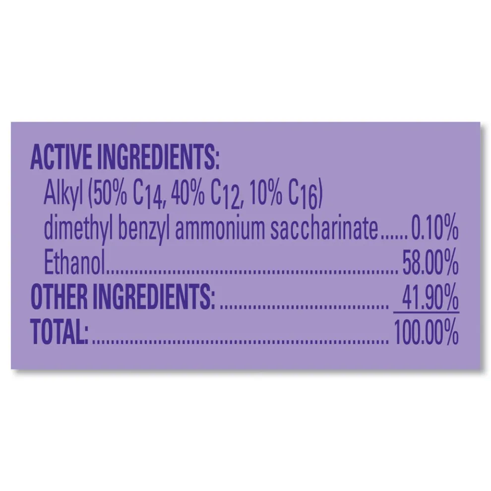 Kills 99.9% of viruses and bacteria, including cold and flu viruses, Salmonella, E. Coli, MRSA, RSV, Staph, and Strep when used as directed.