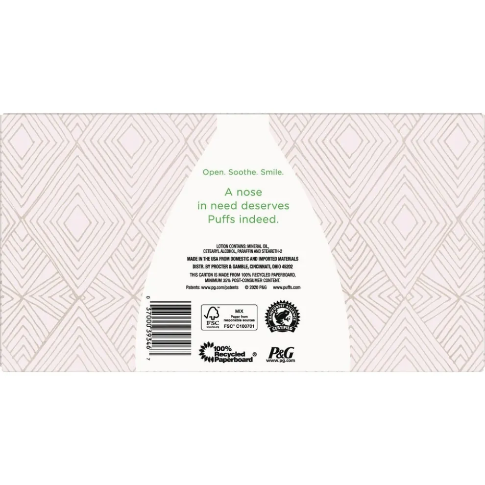 Say goodbye to chapped nostrils and lips. Soft and soothing, lotion-treated tissues are an excellent companion during cold and flu season. Air-Fluffed™ pillows provide downy cushioning and extra thickness. Attractive, designer packaging adds some pop to your Puffs®.