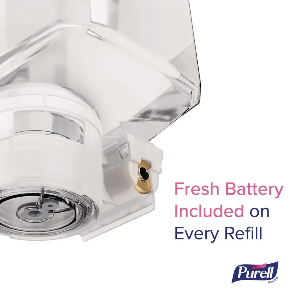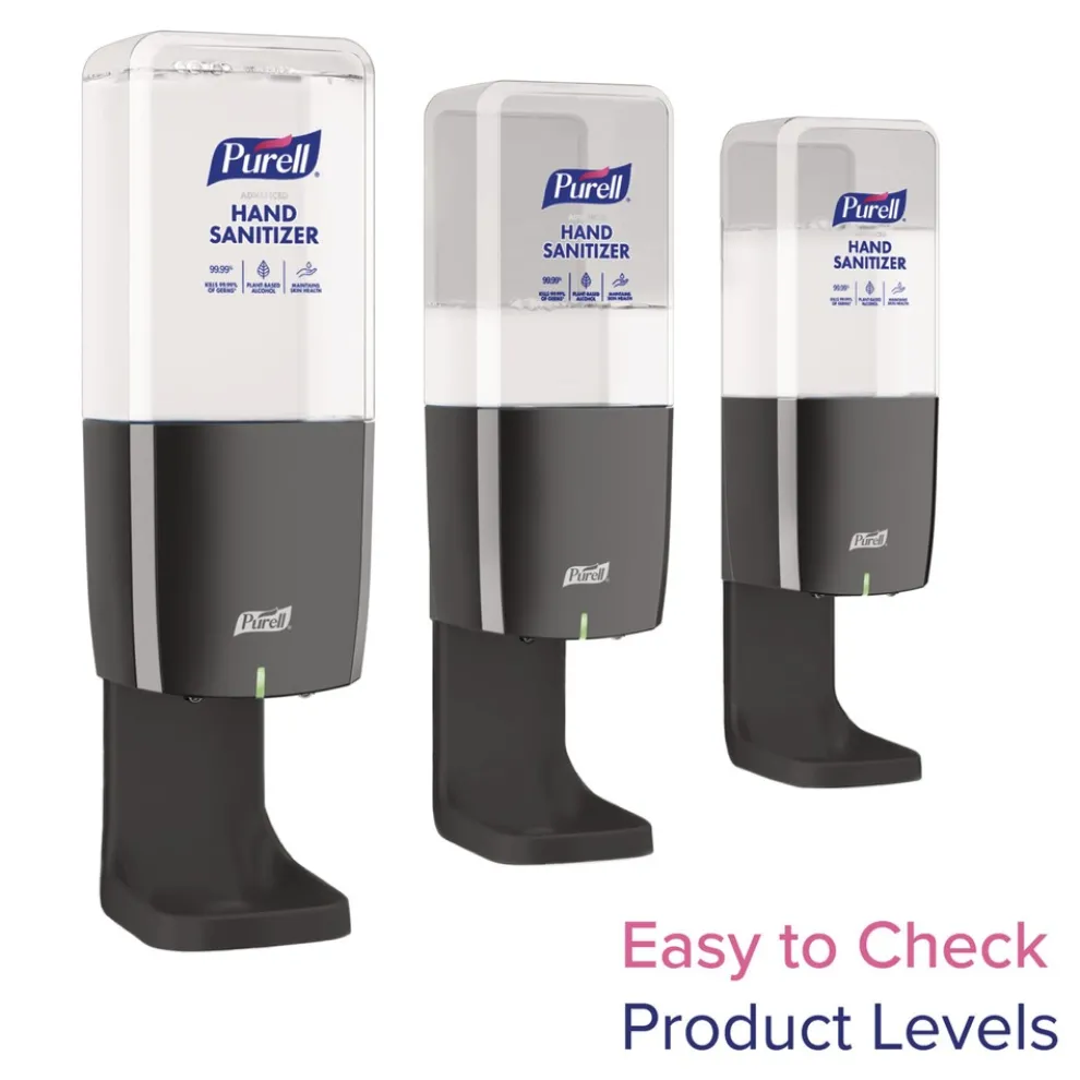 PURELL ES10 Automatic Hand Sanitizer Dispenser requires less maintenance thanks to a fresh battery built into every refill, so you never have to change or buy batteries! Transparent refills make it easy to check product levels without opening the dispenser. Each refill has 30% less plastic and 38% lower greenhouse gas emissions for less waste. Refill bottle, collar and AA battery are easy to pull apart and recycle. Its slim profile fits in tight spaces, and it quietly dispenses highly effective, rich foam hand sanitizer, delivering more ways to impress.