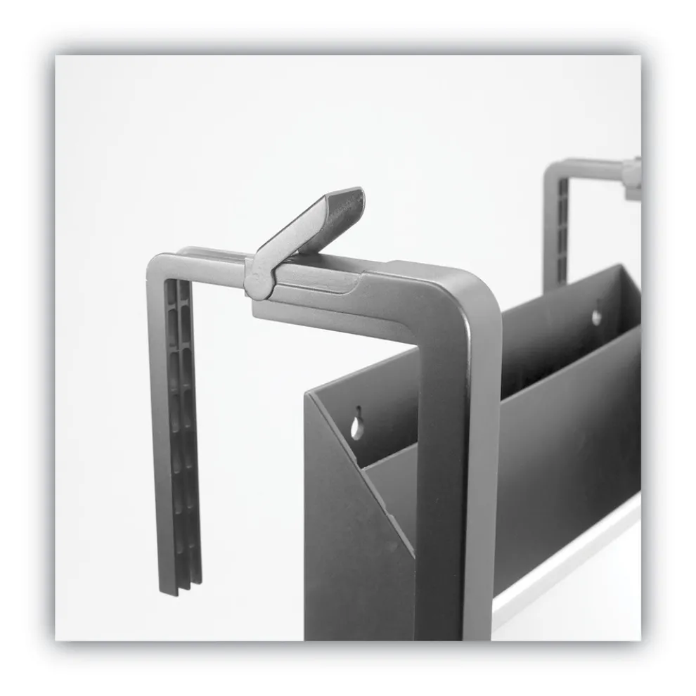 Adjustable brackets allow file pockets to be wall-mounted or hung over a cubicle panel
