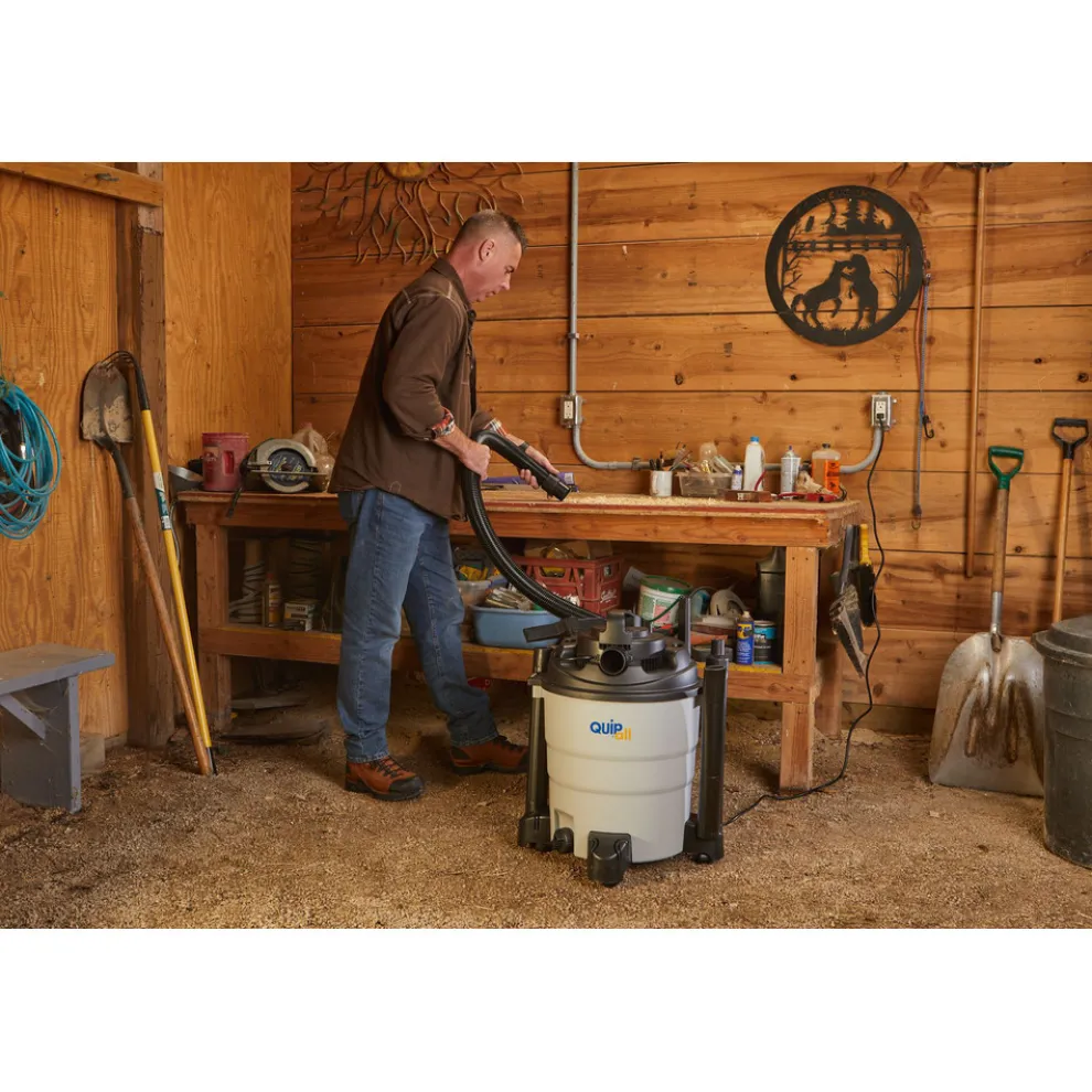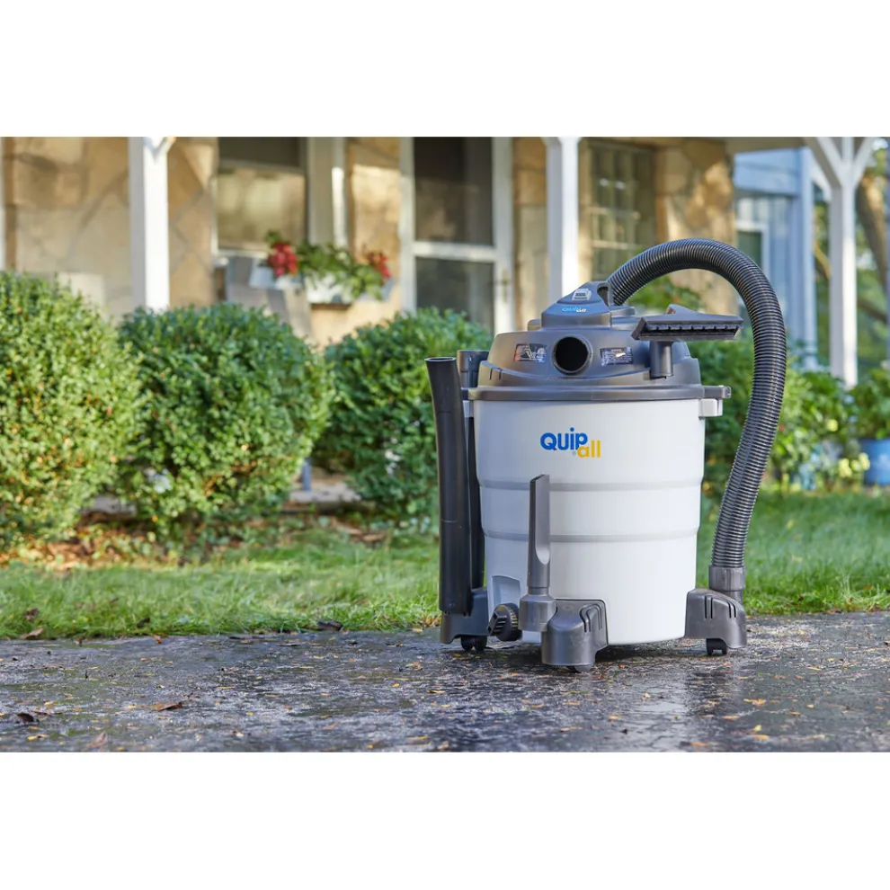 The QUIPALL 8.3 Gallon Wet/Dry Vacuum combines power with versatility. This vacuum makes short work of big messes, wet or dry, in the shop or around the house. A powerful hand-held blower conveniently detaches from the top of the unit with a simple twist, giving you greater cleaning capability when you need it. The vacuum provides excellent reach for even those hard to clean places, and it rolls and maneuvers easily on large, easy-spin castor wheels. The unit comes with two nozzles, two extension tubes and a flexible 2.5 in. diameter hose.