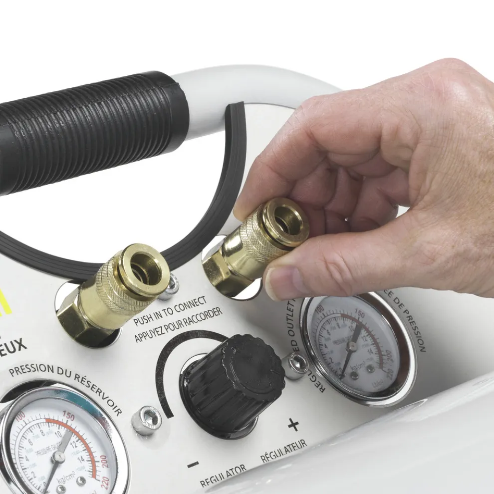 2 Quick-connect couplers for dual tool use and an easy-to-read control panel